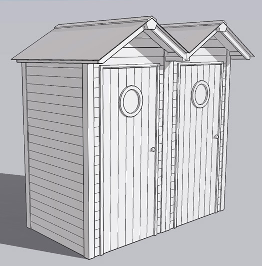 Nous vous recommandons de prévoir un sol isolé de la terre pour l'emplacement de votre cabine (terrasse bois, petite chape de béton, zone carrelée...) et d'une taille idéale de 1,50m x 1,50m.